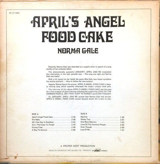 Norma Gale – April's Angel Food Cake (Angelfood Cake) - 1971-Folk, World, & Country (Vinyl)