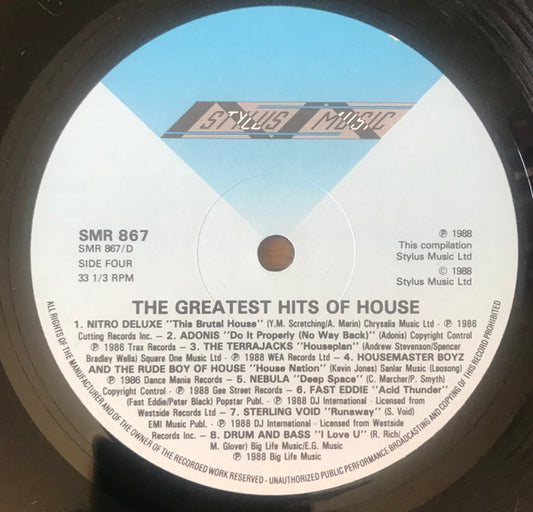 The Greatest Hits Of House -1988-2 lps - Acid House, Deep House, Hip-House, House, Garage House ( UK Import Vinyl )