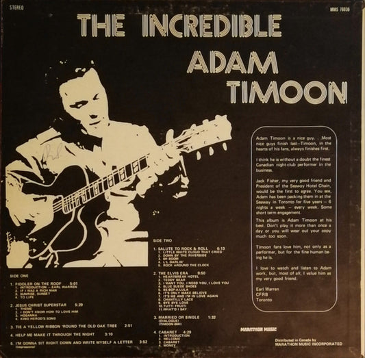 Adam Timoon – The Incredible Adam Timoon - 1974-Rock & Roll, Folk (Vinyl)