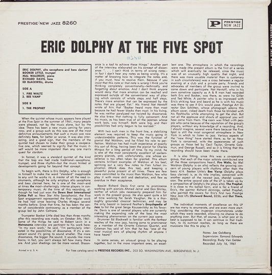 Eric Dolphy – At the Five Spot, Vol. 1 – 1961 – Avant-Garde Jazz / Post-Bop (Vinyl) Very Rare
