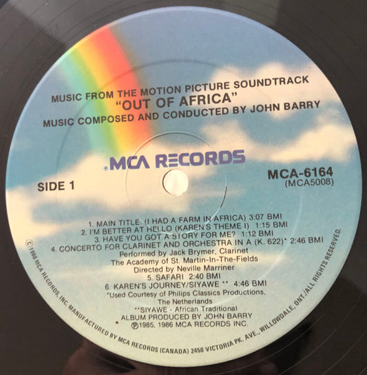 John Barry – Out Of Africa (Music From The Motion Picture Soundtrack) NM