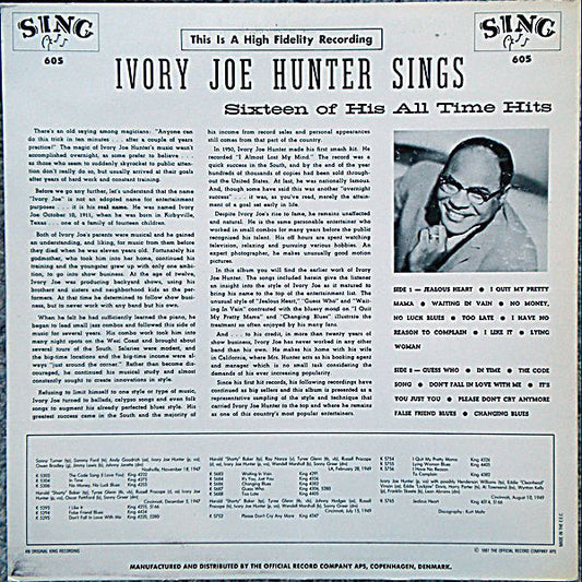 Ivory Joe Hunter – Ivory Joe Hunter Sings Sixteen Of His Greatest Hits - 1987-Funk / Soul, Blues, Pop Style: Vocal ( Denmark Vinyl )
