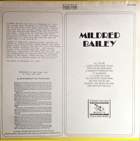 Mildred Bailey – Mildred Bailey - 1973-Jazz Style: Big Band, Vocal (vinyl)