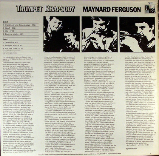 Maynard Ferguson – Trumpet Rhapsody- 1969- jazz (Rare Vinyl)