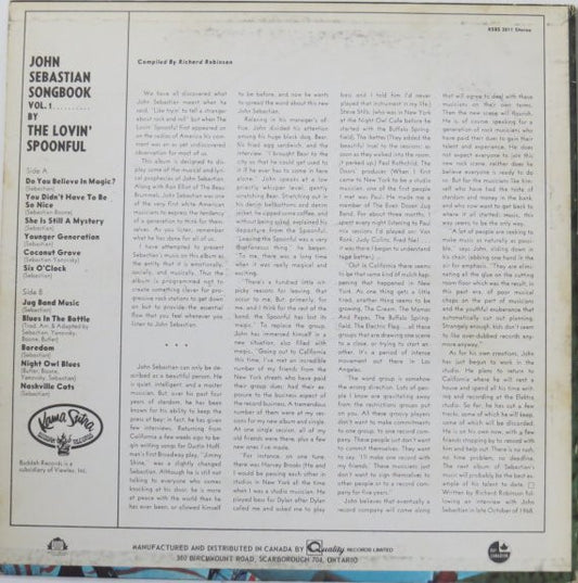 The Lovin' Spoonful – John Sebastian Song Book Vol. 1 - 1970- Rock, Blues, Folk, World, & Country ,Rock & Roll, Bluegrass (Rare Vinyl)