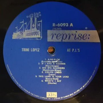 Trini Lopez – Trini Lopez At PJ's - 1963- Rock, Latin, Funk / Soul, Pop (Vinyl)