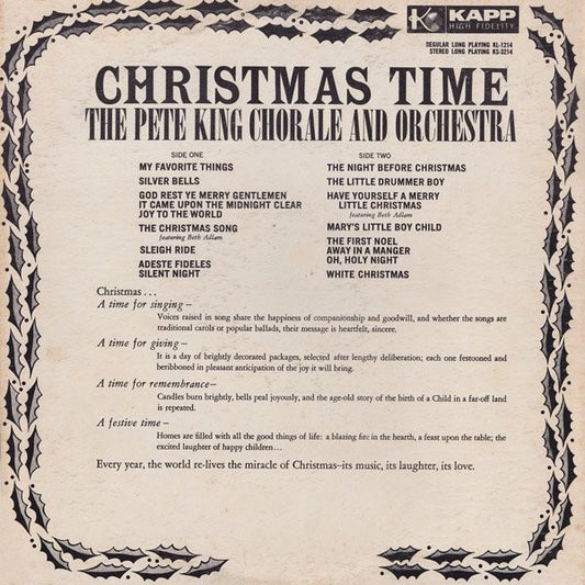 The Pete King Chorale – Christmas Time 1960- Folk, World, & Country Choral, Holiday Christmas (Vinyl)