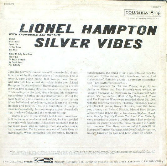 Lionel Hampton – Silver Vibes With Trombones And Rhythm -196- Smooth Jazz (vinyl)