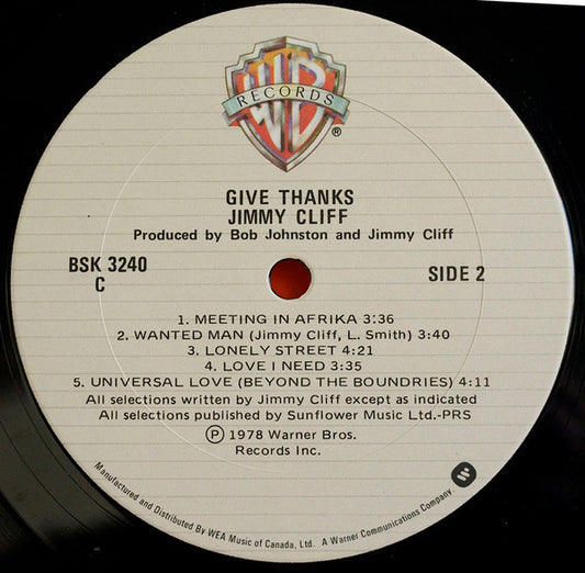 Jimmy Cliff – Give Thankx - 1978-Roots Reggae (vinyl)