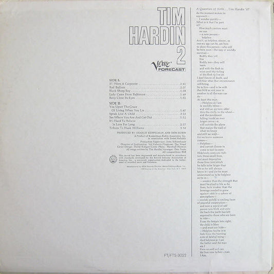 Tim Hardin – Tim Hardin 2 (Folk, Vinyl LP) FTS‑3022