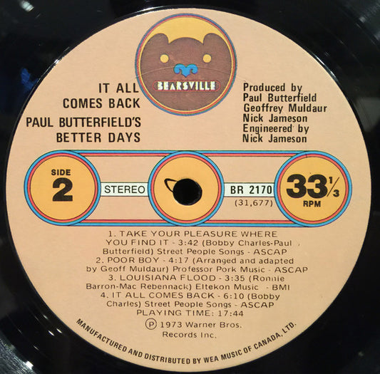 Paul Butterfield's Better Days – It All Comes Back 1973- Rock, Blues Style: Blues Rock (Vinyl