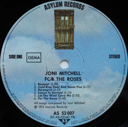 Joni Mitchell – For The Roses (1972, Germany Vinyl LP) — Asylum AS 53 007 Near Mint