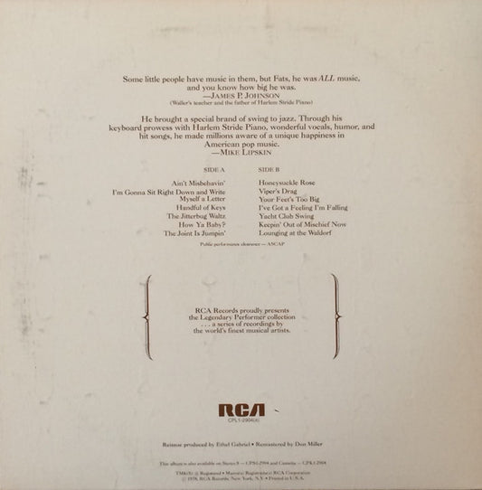 Fats Waller – A Legendary Performer (1978, USA Vinyl LP) — RCA CPL1‑2084