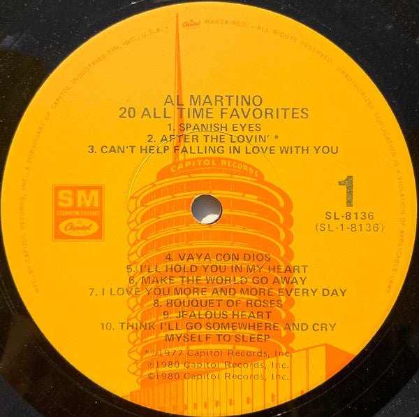 Al Martino – 20 All Time Favorites Vocal Pop / Country (vinyl) 1980 Easy Listening, Jazz • SL‑8136, Capitol Records