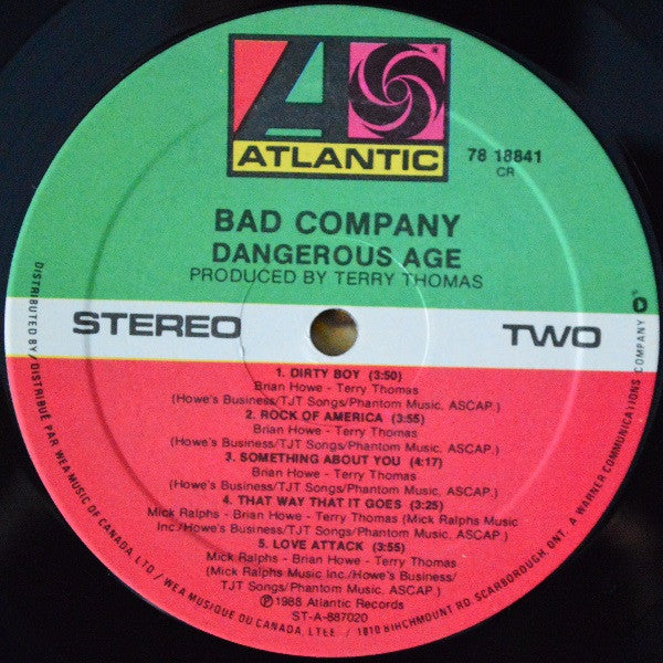 Here's a fascinating piece of Bad Company history that often gets overlooked by casual fans - their 1988 comeback album "Dangerous Age" on Atlantic Records. This Canadian pressing represents a pivotal moment when the band reunited after a six-year hiatus, with Paul Rodgers returning alongside original members Simon Kirke and Mick Ralphs. What makes this release particularly significant is that it marked their transition into the late 80s rock landscape, incorporating more contemporary production while maintaining that unmistakable Bad Company swagger that made them superstars in the 70s.