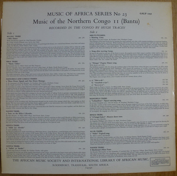 Bantu - Music Of The Northern Congo II (Bantu) - Music Of Africa Series – No.23 - 1963- African Folk (Rare Vinyl)