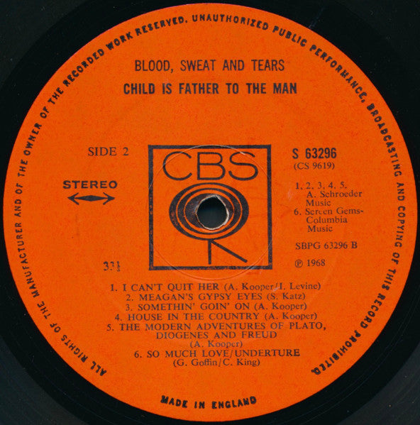 Blood, Sweat And Tears – Child Is Father To The Man - 1968- azz-Rock, Classic Rock, Blues Rock, Psychedelic Rock, Pop Rock- UK Import Vinyl