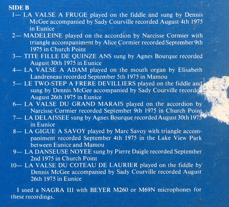 | B1 | Dennis McGee Accompanied By Sady Courville– |