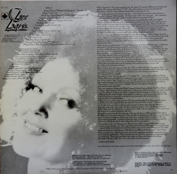 The set includes interpretations of Sondheim, Cole Porter, Duke Ellington, and more, showcasing Laine’s ability to move seamlessly between genres. Released by RCA Victor Canada, this pressing features the “dynaflex” format and remains a standout document of Laine’s live brilliance.