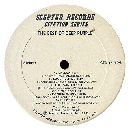 Deep Purple – The Best Of Deep Purple 1972 Genre: Rock Style: Hard Rock