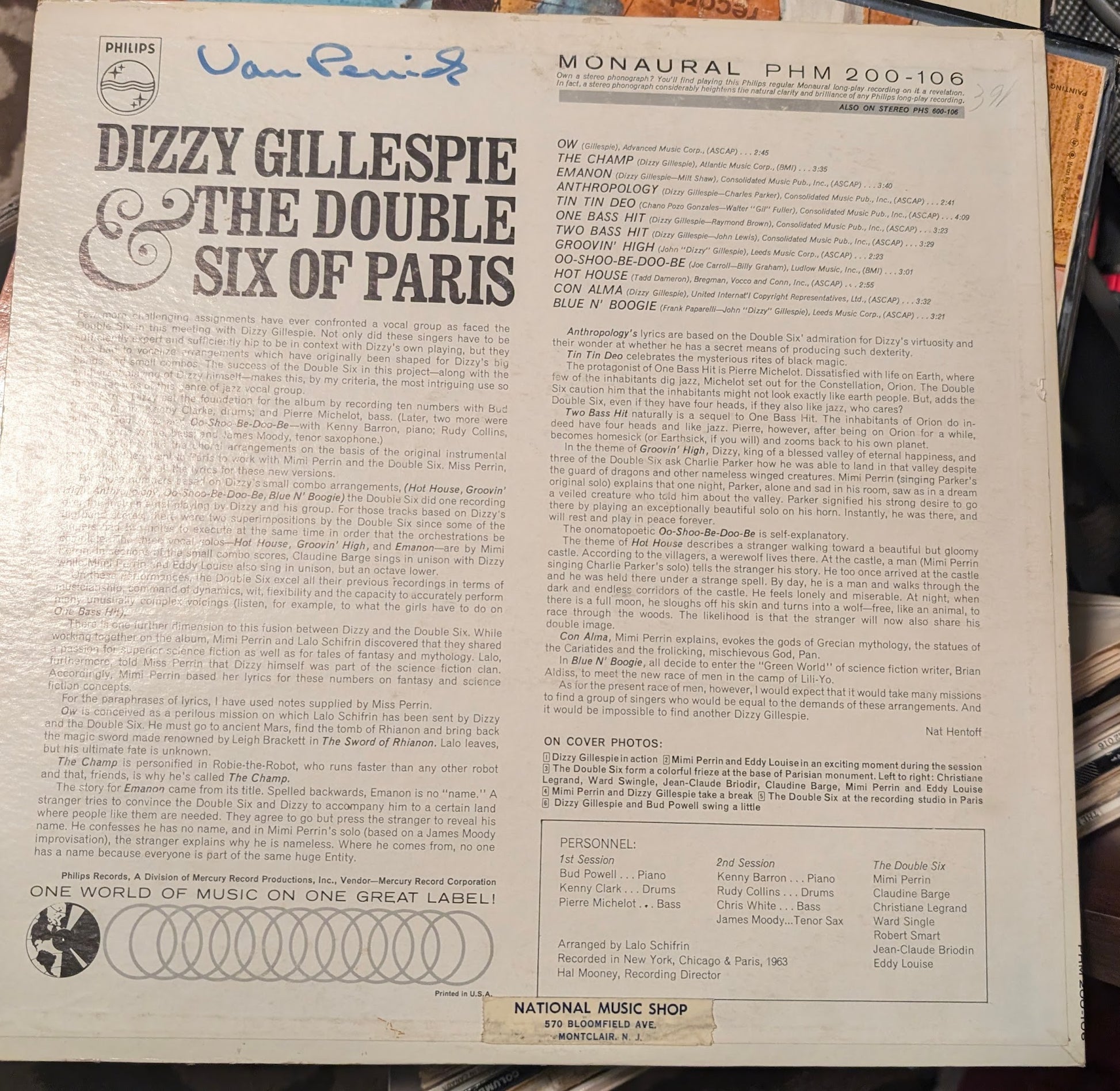 Dizzy Gillespie The Double Six Of Paris Dizzy Gillespie And The Double Six Of Paris 1963 Genre: Jazz Style: Bop (Mono Vinyl)