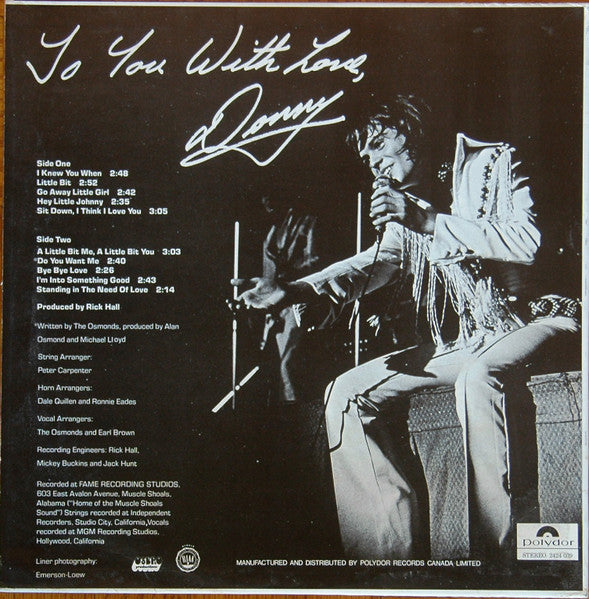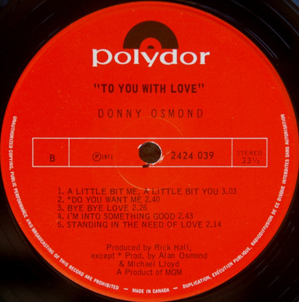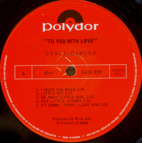 Donny Osmond – To You With Love, Donny 1971-pop vocal (Vinyl )