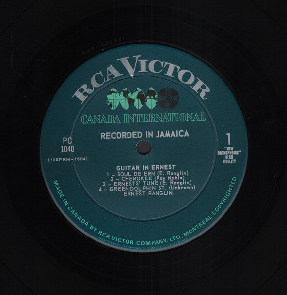 This rare Canadian RCA Victor pressing (PC‑1040) showcases Jamaican guitar legend Ernest Ranglin in his first solo recording, Guitar in Ernest. Cut in Kingston and produced by M.K. Knott, the album blends jazz standards with Ranglin’s original compositions, including “Soul de Ern,” “Ernie’s Delight,” and “Chow Mein.” Backed by Esmie Butler (bass), Carl McLeod (drums), and Smith Laiz (piano), Ranglin’s tone and phrasing reflect deep technical mastery and Caribbean swing. A landmark release in Jamaican jazz history, praised by critics across the UK and Canada for its taste, clarity, and rhythmic precision.