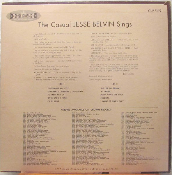 Jesse Belvin – The Casual - 1959-Funk / Soul Style: Rhythm & Blues (Rare Vinyl)