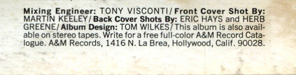 This original US A&M pressing represents the album in its intended form, before later reissues altered the mix and mastering. The production work by Denny Cordell gives these performances the raw, live-in-the-studio feel that made Cocker's reputation, and you can hear every growl and rasp in his distinctive voice. Beyond the hit single, deep cuts like his take on "Feelin' Alright" and Bob Dylan's "I Shall Be Released" showcase an artist unafraid to make other people's songs completely his own. For collectors of early A&M releases or anyone interested in the intersection of British blues and American soul, this is essential listening that helped define what rock vocals could be in the post-psychedelic era.