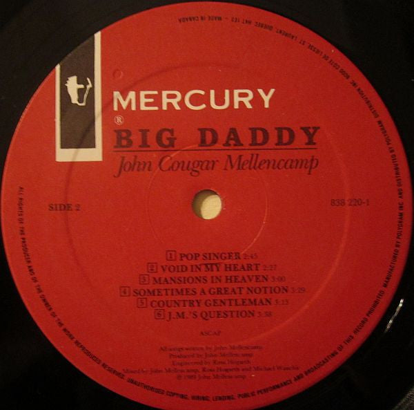 John Cougar Mellencamp – Big Daddy - 1989-Folk Rock, Southern Rock (Vinyl)
