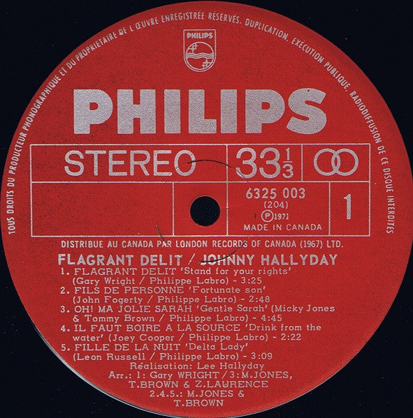Johnny Hallyday Flagrant Délit - 1971-Pop Rock, Rock & Roll (Vinyl)