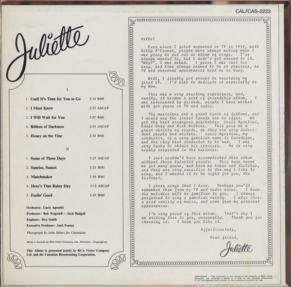 Juliette Juliette 1968 Pop Style: Easy Listening, Vocal (Mint Vinyl)
