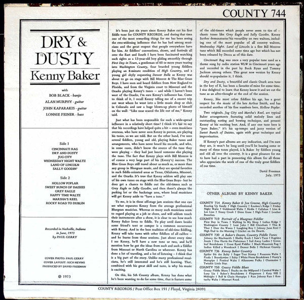 Kenny Baker Dry & Dusty Folk, World, & Country Style: Bluegrass, Appalachian Music (Vinyl)