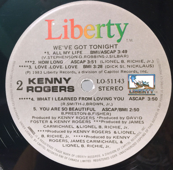 Kenny Rogers – We've Got Tonight - 1983-Country Rock, Pop Rock, Ballad (Vinyl) Near Mint