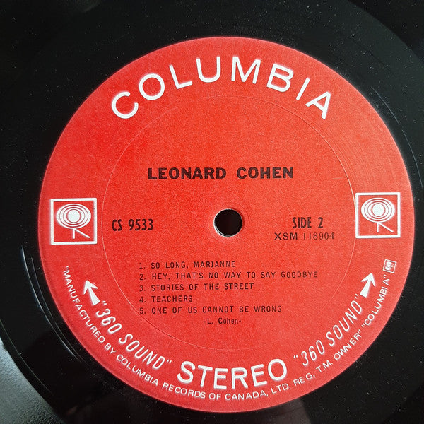 Description This original U.S. Columbia stereo pressing (CS‑9533) marks Leonard Cohen’s debut album, produced by John Simon. A landmark in poetic folk, the record features enduring classics like “Suzanne,” “So Long, Marianne,” and “Sisters of Mercy,” blending sparse arrangements with Cohen’s haunting voice and lyrical depth. The cover art and inner sleeve reflect the album’s introspective tone, while the “360 SOUND” branding signals Columbia’s high-fidelity era. A cornerstone for collectors of 1960s folk, literary songwriting, and Cohen’s singular legacy.