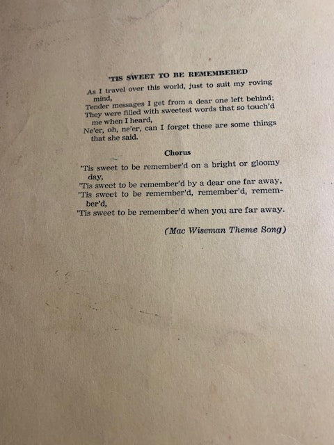 MAC WISEMAN The VOICE with a HEART SONG & PICTURE ALBUM MAGAZINE with LYRICS