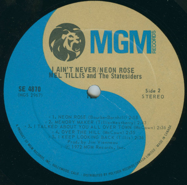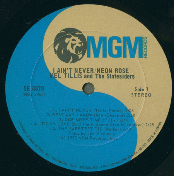 Mel Tillis And The Statesiders I Ain't Never - 1972- Folk, World, & Country (Vinyl)