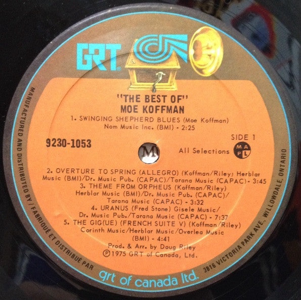 Here's a pressing that speaks to the sophisticated collector who understands that some of Canada's most compelling jazz emerged from the Great White North during the 1970s. Moe Koffman, the Toronto-born flutist and saxophonist, was already a veteran of the Canadian jazz scene by the time this GRT compilation surfaced in 1975, having built his reputation through decades of session work and his own innovative recordings that bridged traditional jazz with funk and soul influences. This particular collection captures Koffman at his most accessible, featuring tracks that showcase his distinctive flute work and his band's tight rhythm section that could lock into a groove with the best of them.