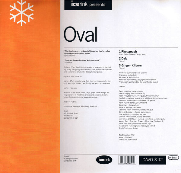 Oval Photograph - 1992-Electronic, Rock, Pop Dub, Power Pop, Synth-pop, Indie Rock ( Vinyl, 12", 45 RPM, Single )