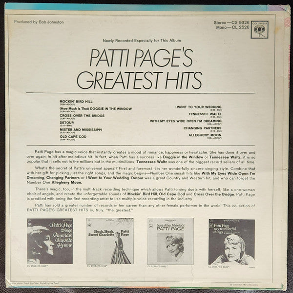 Patti Page – Patti Page's Greatest Hits -Folk, World, & Country (vinyl) NM