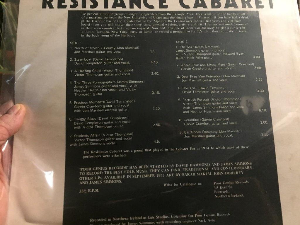 Resistance Cabaret - 1970's ? Irish Import - Rare Folk Vinyl