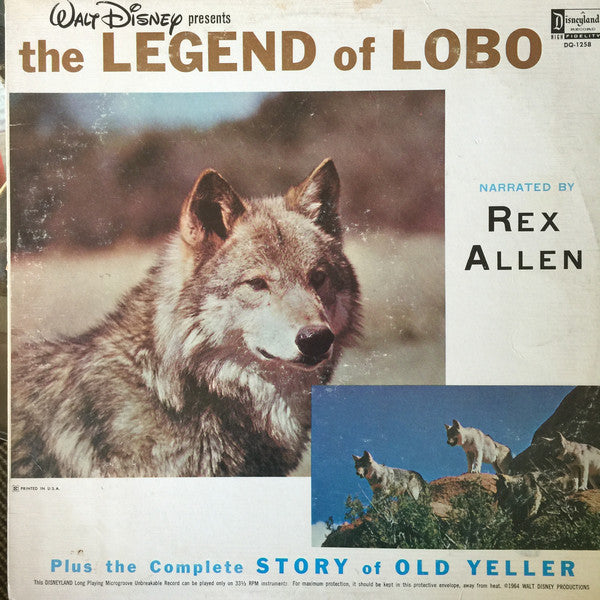 Rex Allen, Fess Parker – Walt Disney Presents The Legend Of Lobo / Walt Disney's Old Yeller - Soundtrack (Rare Vinyl)
