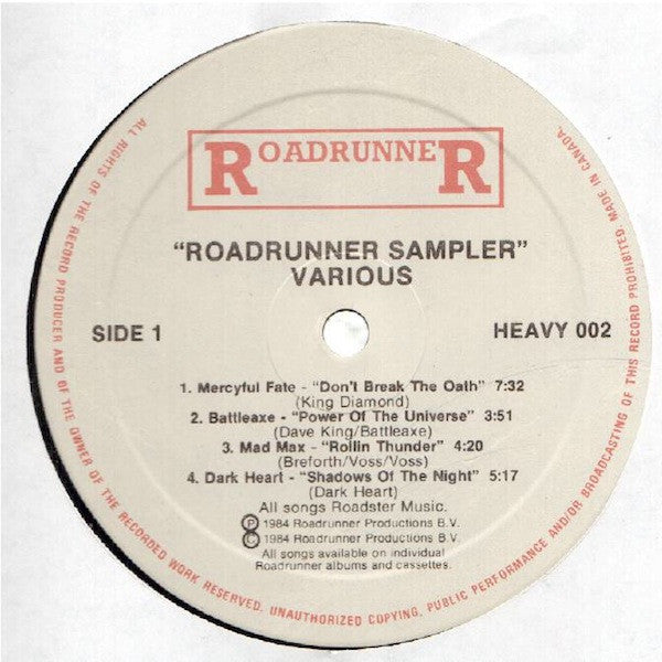 Roadrunner Sampler (1984, Canada, 2×Vinyl LP) — HEAVY 002