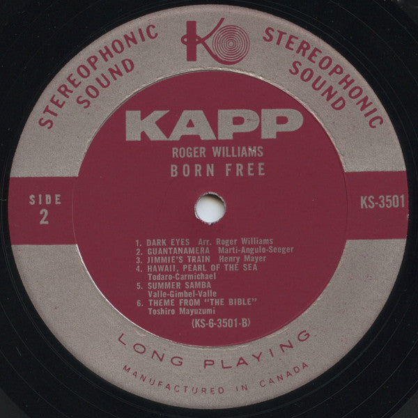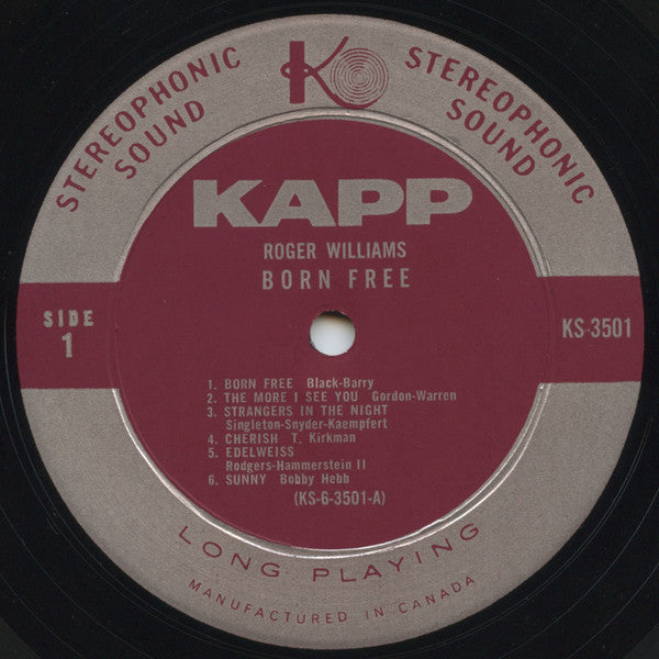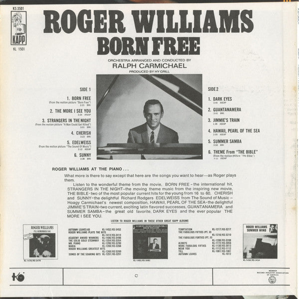 Roger Williams Born Free - 1966-Jazz, Latin, Pop Style: Easy Listening (vinyl)