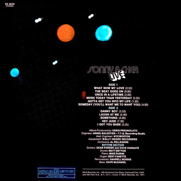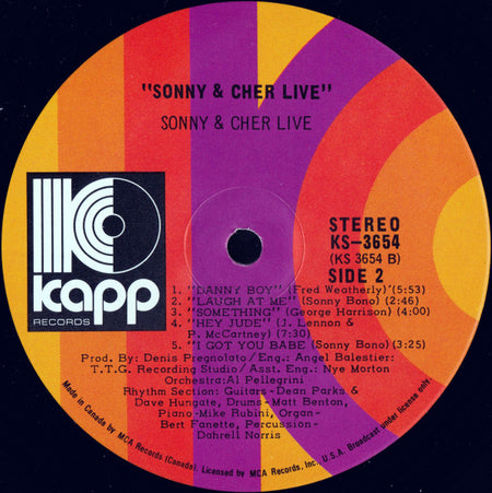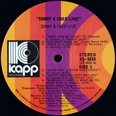Here's a fascinating slice of pop history that captures Sonny & Cher at the absolute peak of their cultural relevance. Released in 1971, this live album documents the duo during their transition from folk-rock hitmakers to full-blown variety show entertainers, just as "The Sonny & Cher Comedy Hour" was launching them into television stardom. What makes this recording particularly compelling is how it showcases their evolved stage personas – Sonny's self-deprecating humor and Cher's razor-sharp wit – that would soon make them household names beyond just their musical output.