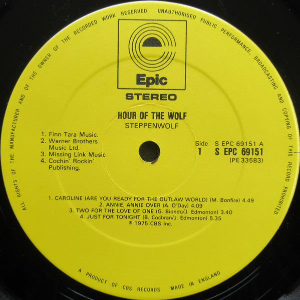 Steppenwolf – Hour Of The Wolf - 1975- Hard Rock, Classic Rock ( UK Import Vinyl )