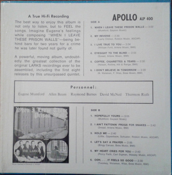 The Larks Featuring Eugene Mumford – When I Leave These Prison Walls - Rhythm & Blues (Very Rare Vinyl)