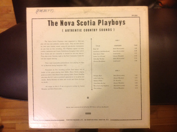 The Nova Scotia Playboys – Authentic Country Music - 1968 - Folk, World, & Country , Maritimes ( Very Rare Vinyl )