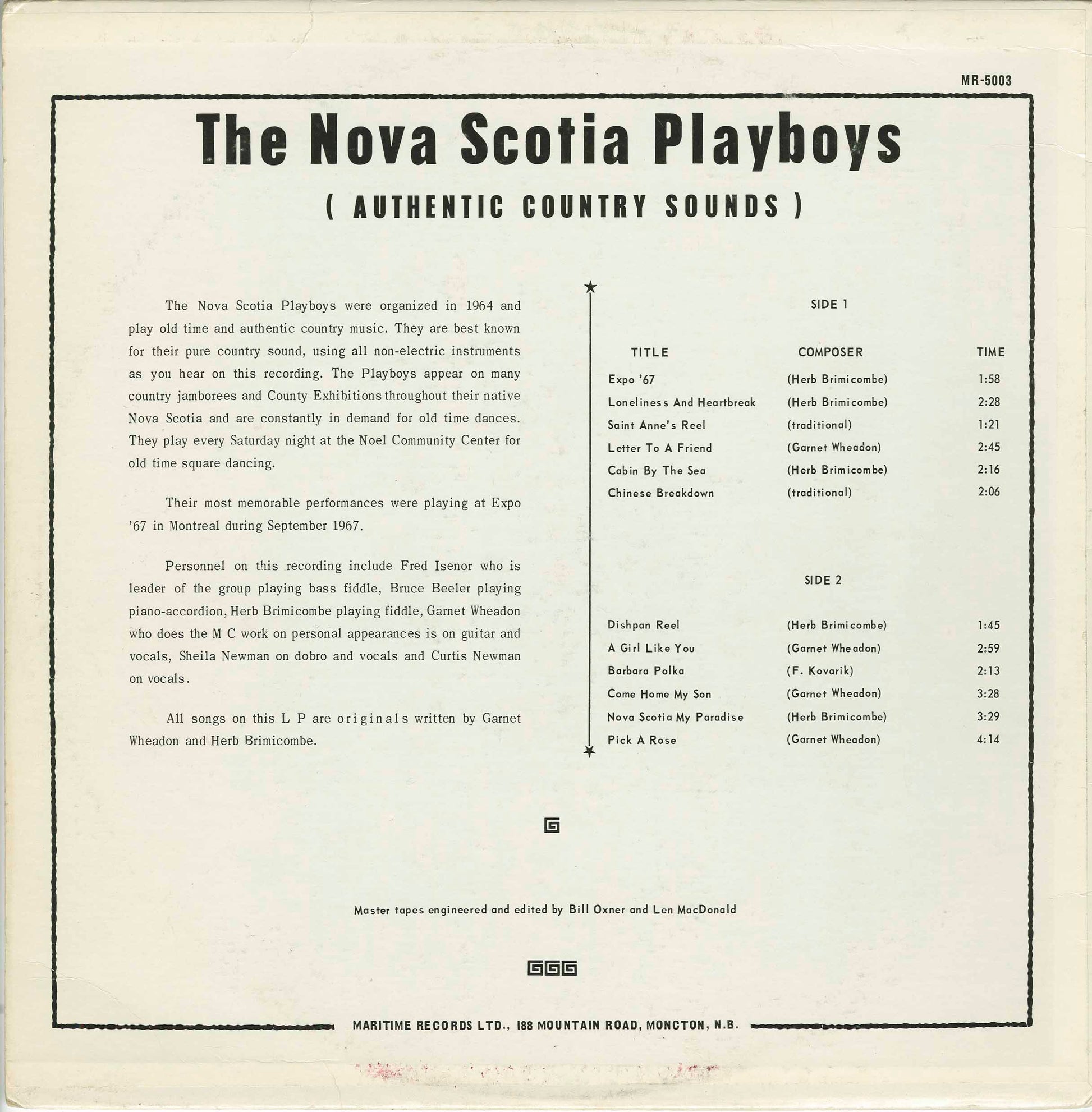 The Nova Scotia Playboys – Authentic Country Music - 1968 - Folk, World, & Country , Maritimes ( Very Rare Vinyl ) Traditional, Country, Fiddle