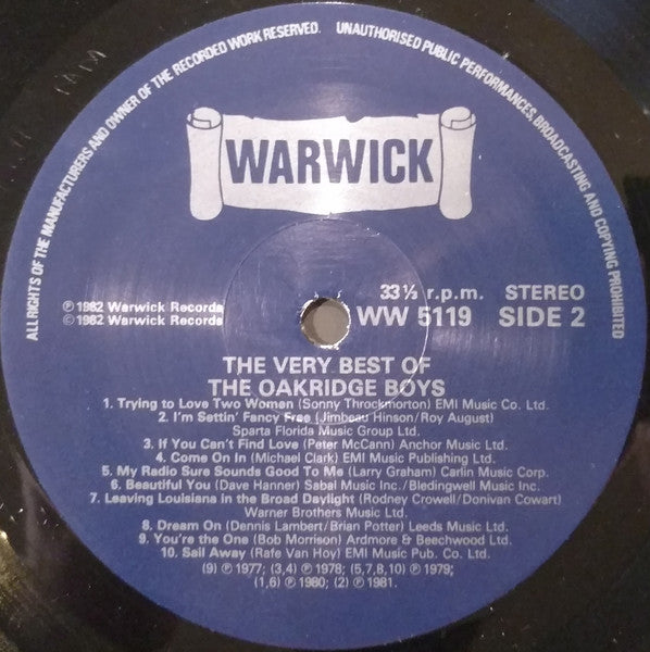The Oak Ridge Boys – The Very Best Of The Oak Ridge Boys - 1982- Country (UK Import Vinyl )
